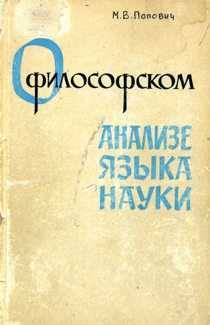 1. О философском анализе языка науки / М. В. Попович ; отв. ред. П. В. Копнин ; АН УССР, Ин-т философии. – Киев : Наук. думка, 1966. – 224 с.