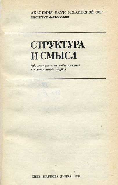 9. Структура и смысл (формальные методы анализа в современной науке) / АН УССР, Ин-т философии ; авт.: М. В. Попович, С. А. Васильев, Н. Б. Вяткина [и др.] ; отв. ред. М. В. Попович. – Киев : Наук. думка, 1989. – 229 с.
