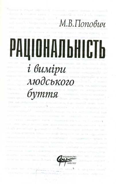 14. Раціональність і виміри людського буття / М. В. Попович. – Київ : Сфера, 1997. – 290 с.