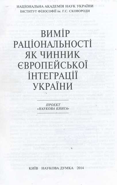 28. Вимір раціональності як чинник європейської інтеграції України / НАН України, Ін-т філософії ім. Г. С. Сковороди ; авт.: М. Попович, А. Васильченко, В. Омельянчик [та ін.] ; відп. ред. М. Попович. – Київ : Наук. думка, 2014. – 293 с. – (Проект «Наукова книга»).